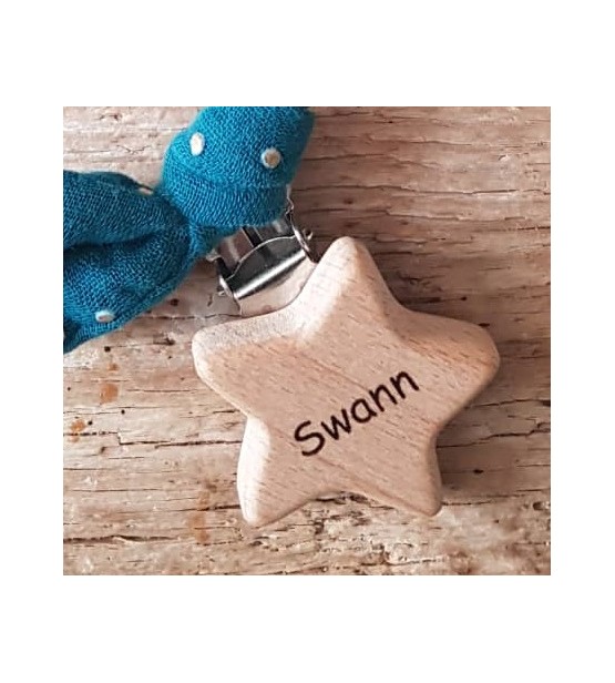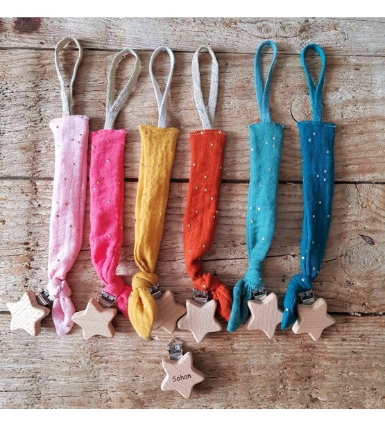 Et, à noter que la présence d’une petite étoile en bois gravée à son nom évitera toute confusion avec la tétine des petits camarades, au parc, à la crèche ou chez Nounou.