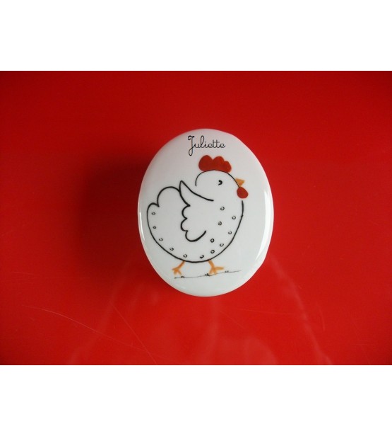 Boîte à dents de lait ovale en porcelaine, décorée à la main d’une petite poule! Cette boîte invite l’enfant à déposer sa dent de lait dans la boîte.