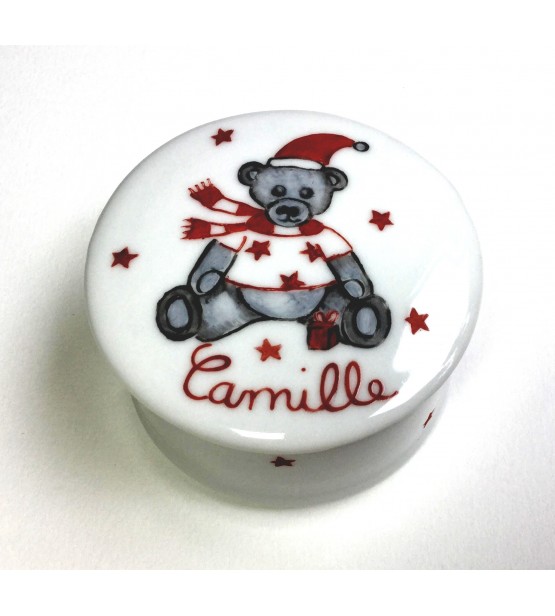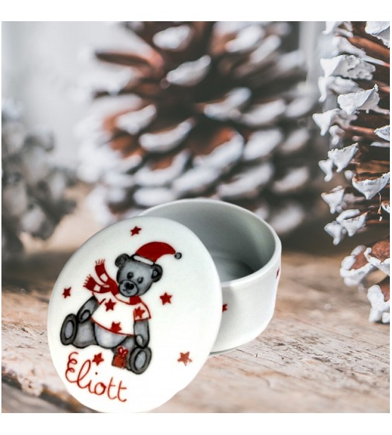 Boîte en porcelaine personnalisée « Ourson de Noël »