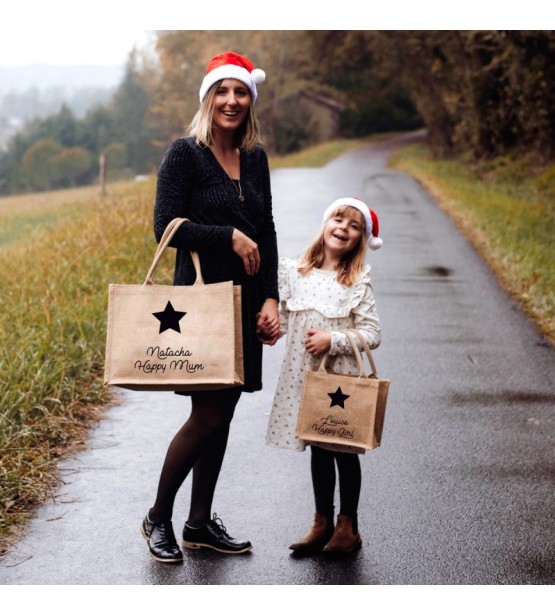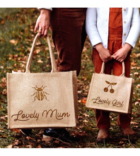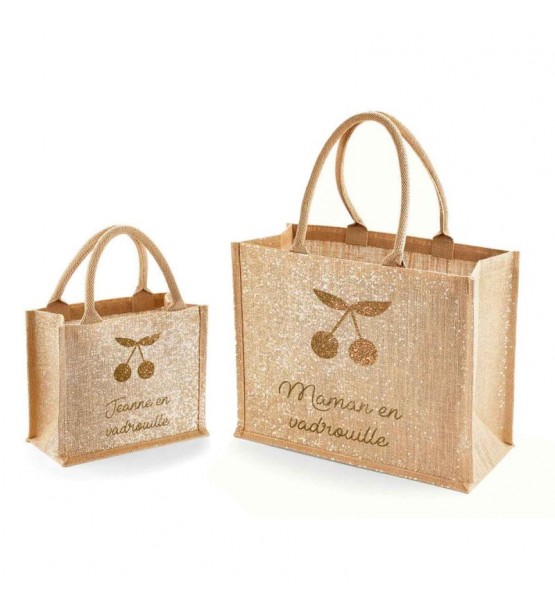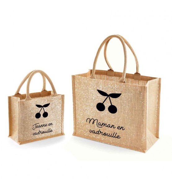 On adore ce genre de créations Duo Mère / Fille ! Il s’agit là d’un duo de cabas en jute naturel personnalisable et tendance.