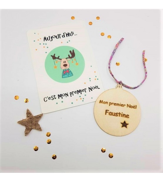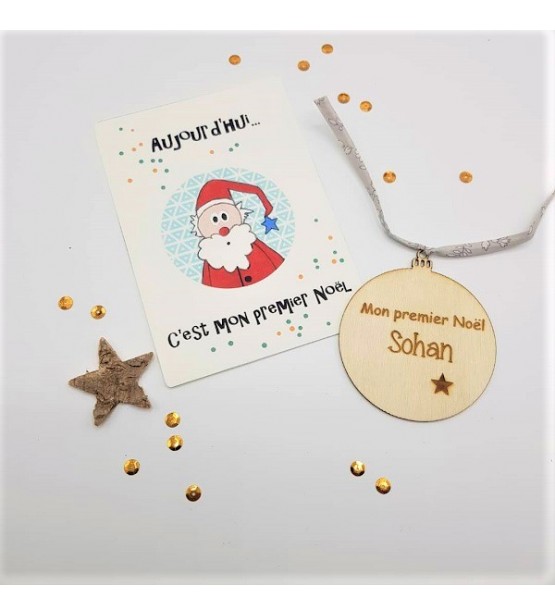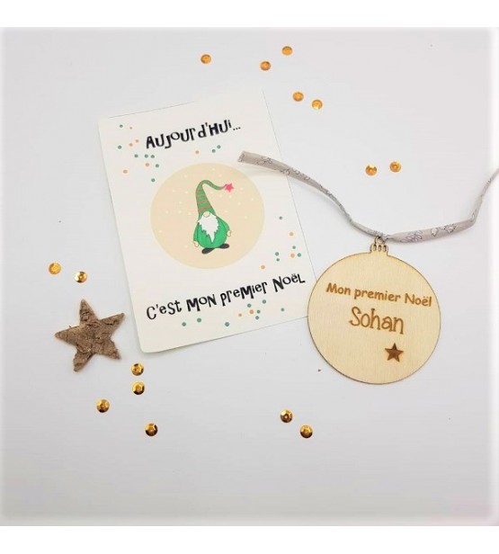 Voici l’idée Cadeau/Déco parfaite: une boule de Noël en bois gravée et personnalisée avec sa petite carte étape. Ce cadeau de Noël original peut être offert pour célébrer le 1er Noël de Bébé, il sera un beau souvenir !