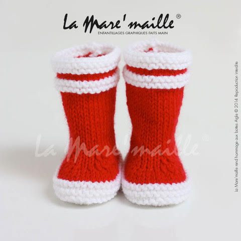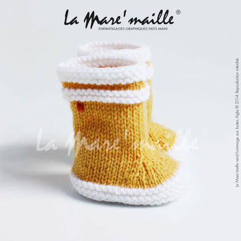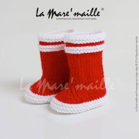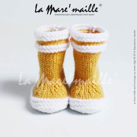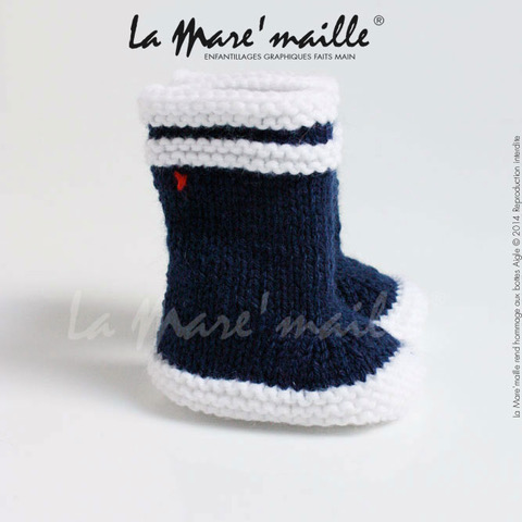 Tricotées main, ces petites bottes hommage aux bottes Aigle ® de notre enfance enveloppent le pied de bébé et remontent jusqu’à mi-mollet pour rester élégant et bien au chaud! Parfait en cadeau de naissance.