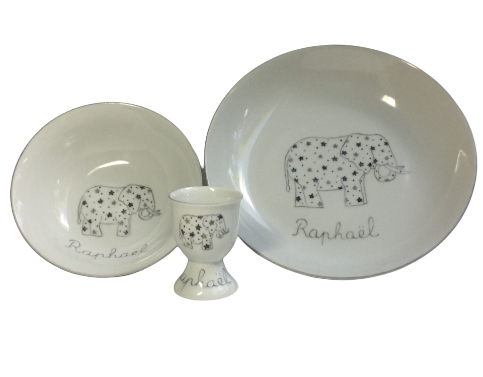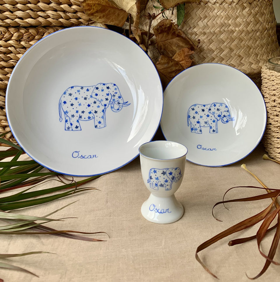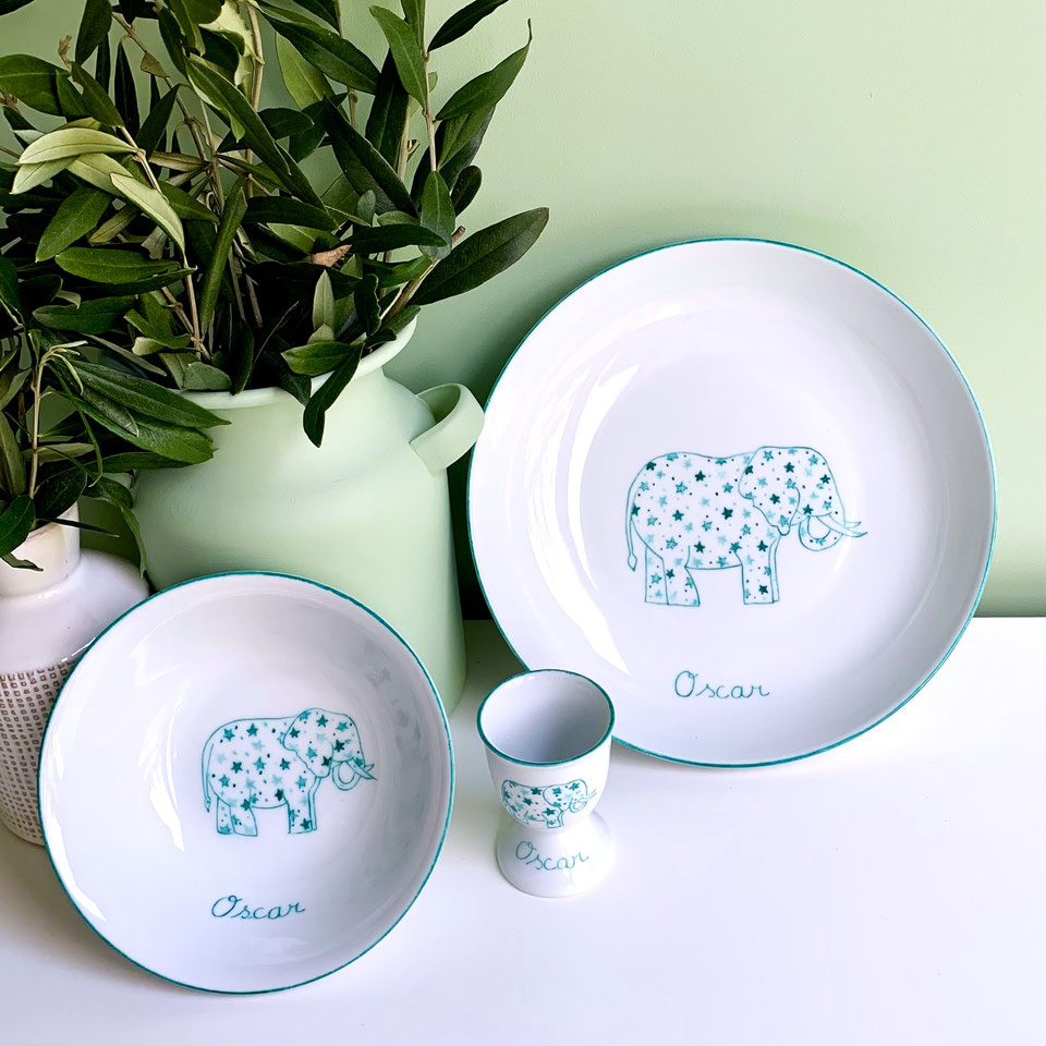 Coffret cadeau vaisselle personnalisée « Eléphant étoilé » – 4 coloris