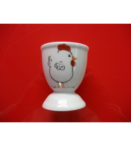 Coquetier en porcelaine décoré à la main d’une petite poule.