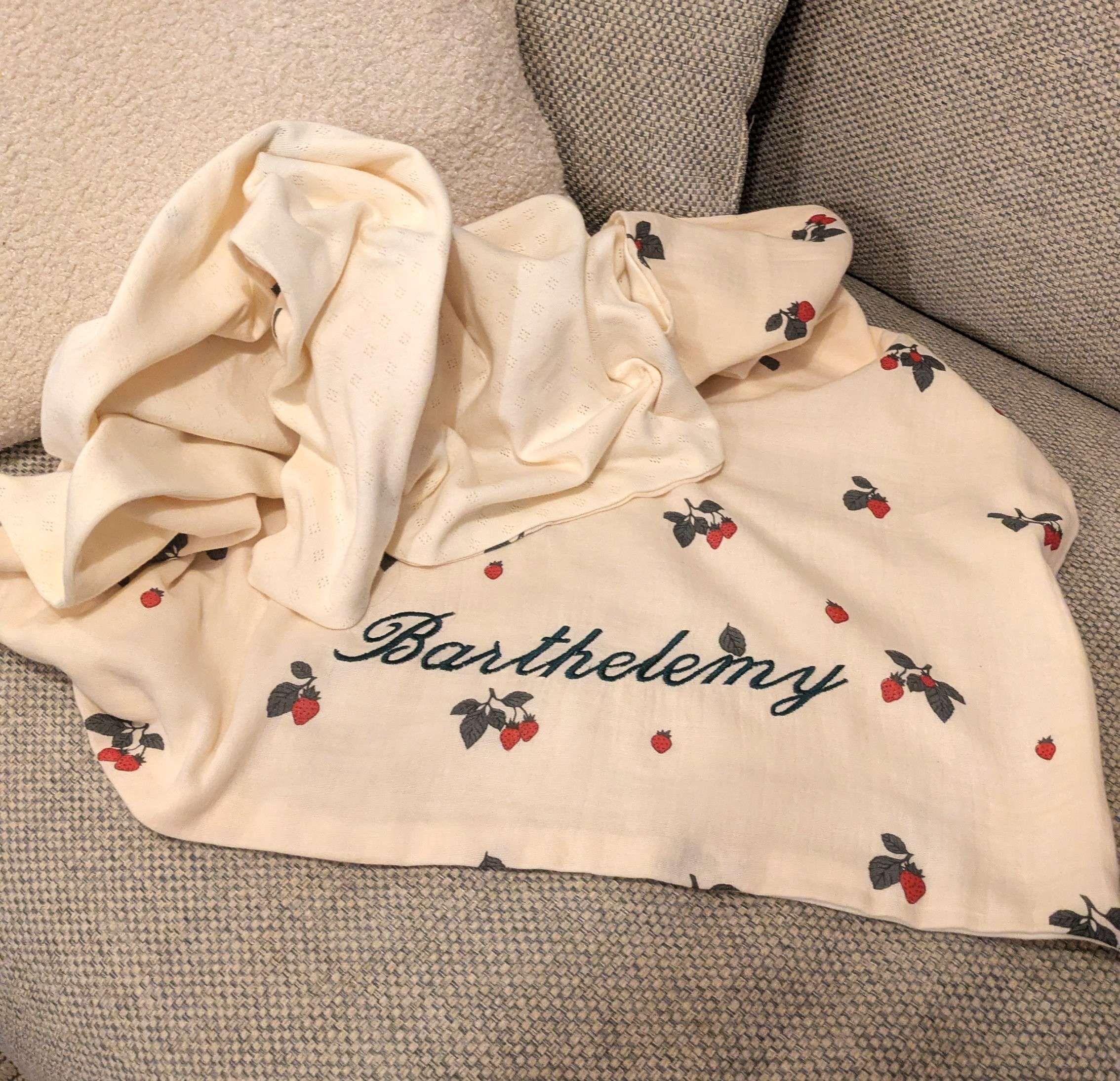Découvrez notre couverture en maille pointelle personnalisée, douce, légère et respirante, idéale pour envelopper bébé avec délicatesse. Son motif pointelle apporte un charme intemporel et une texture agréable pour les petites mains et les câlins.