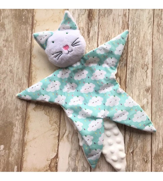 Un petit chat tout doux,, joli et rassurant, le doudou idéal pour votre tout-petit!