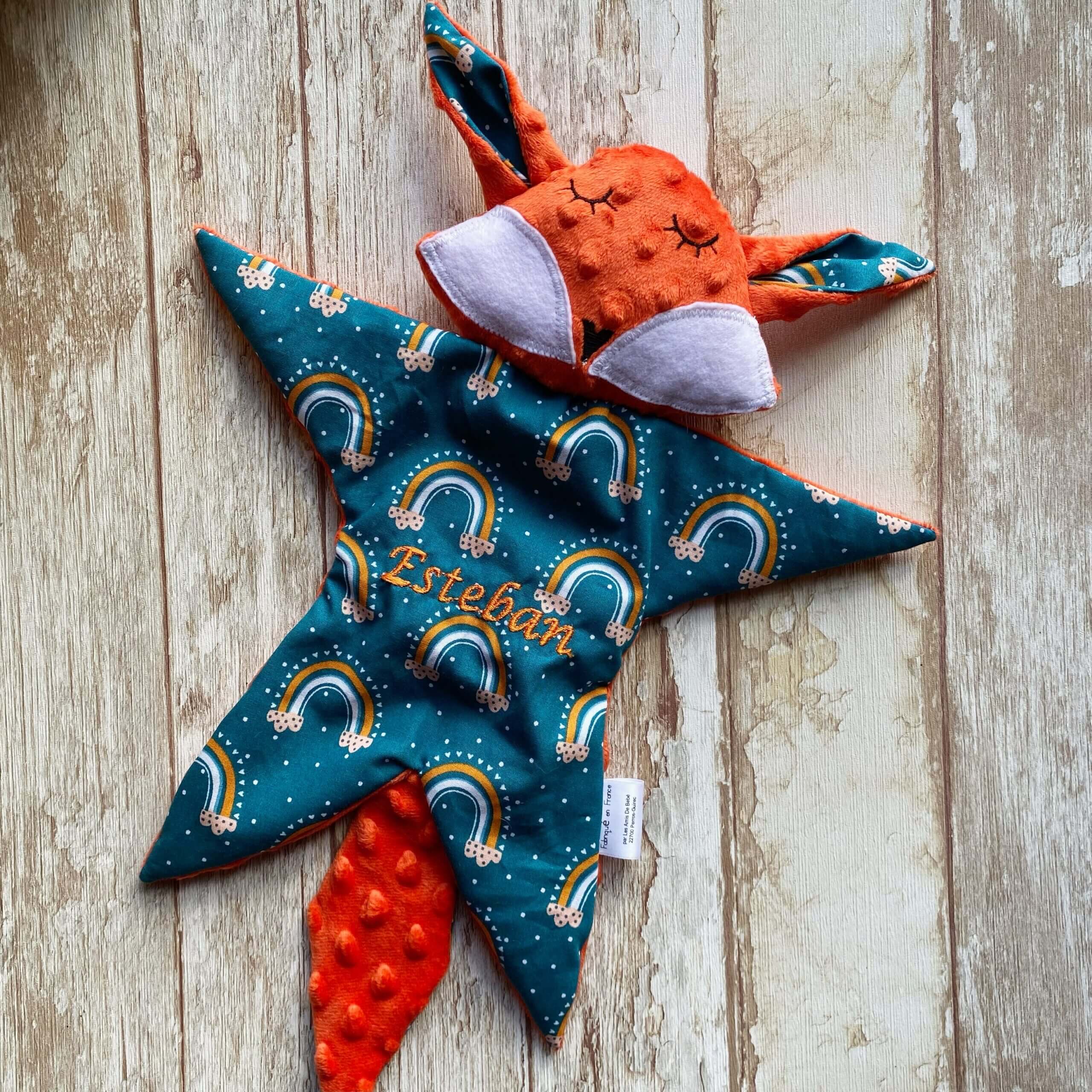 Un adorable Renard , joli & rassurant, le doudou idéal pour votre tout-petit. Il pourra être aussi offert comme cadeau de naissance, un sans faute assuré! PETIT PLUS! Pour une attention vraiment unique il est personnalisable au prénom de l’enfant.