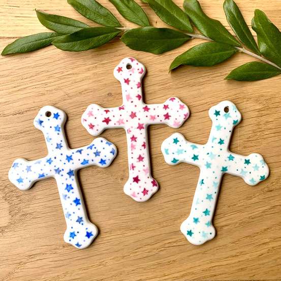 Ma jolie croix en porcelaine Etoilée – 3 Coloris