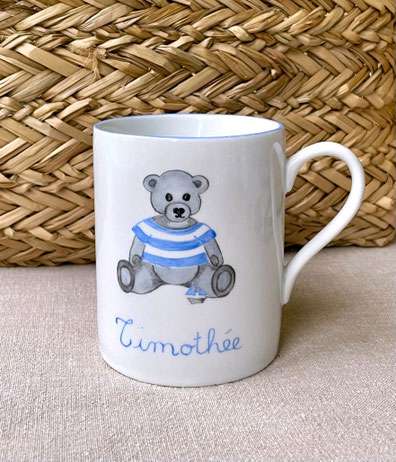 La tasse personnalisée « Ourson » allie tendresse et simplicité dans une création peinte à la main et entièrement personnalisable.