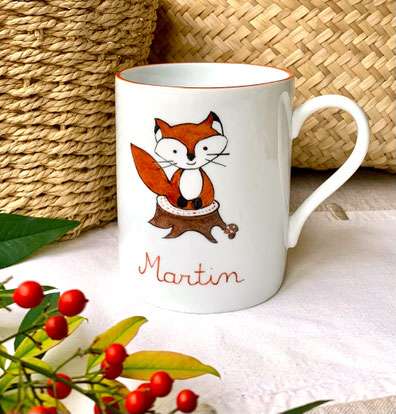 La tasse personnalisée « Petit renard » propose une illustration tendre peinte à la main et une personnalisation délicate.
