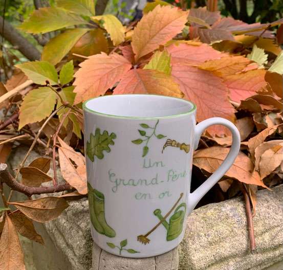 Avec ses outils de jardin et ses détails végétaux, la tasse « Jardinage » rend hommage à ceux qui aiment cultiver la nature.