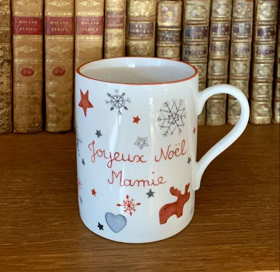 La tasse personnalisée « Joyeux Noël » apporte l’esprit des fêtes dans une création artisanale peinte à la main et entièrement personnalisable.