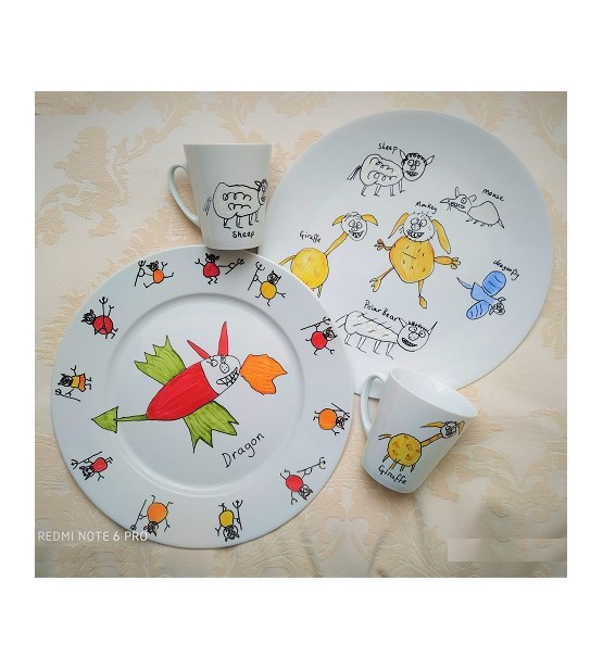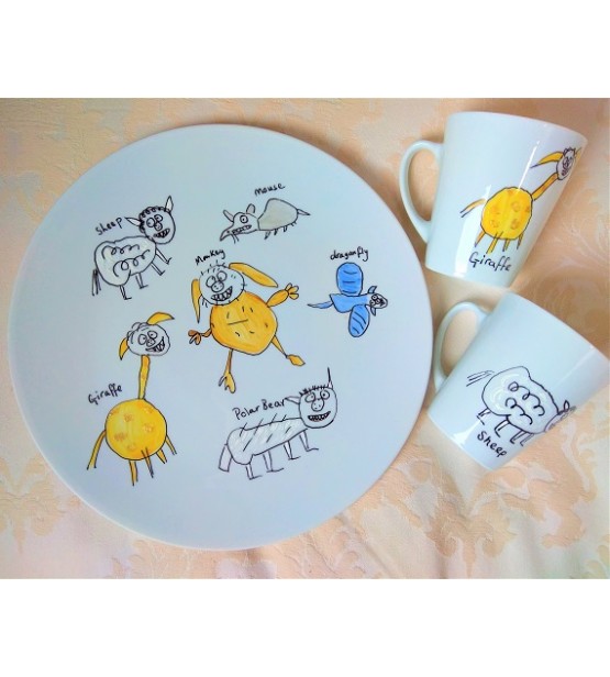 Nos enfants sont des artistes et puis c’est tout! Voilà donc une bonne raison de reproduire leur chef-d’oeuvre sur porcelaine pour en faire des souvenirs inoubliables.